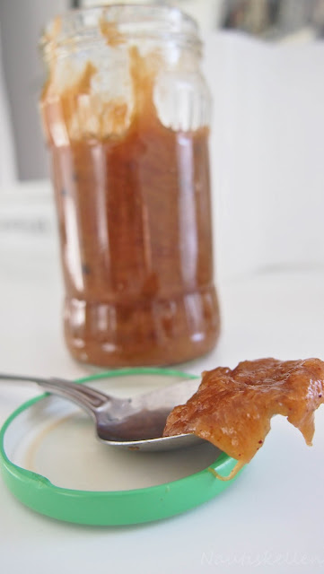 Ensimmäisellä selauskerralla silmiini osui tämä raparperichutneyn resepti. Äitini pihassa kasvaa rapareria aivan liikaa omiin tarpeisiin ja olenkin pakastanut sitä joka vuosi melko runsaasti. Raparperipiirakat ja -kiisselit ovat vakioreseptejäni, mutta mitään hillon tapaista en ole siitä tajunnut keitellä! Täytyy sanoa, että tästä tuli ehkä parasta koskaan tekemääni chutneytä. Makeaksi keitetty, hieman kirpakka raparperi yhdistettynä chilin poltteeseen, kardemummaan ja kaneliin - ooh, mikä yhdistelmä. Olen jo syönyt koko purkillisen turkkilaisen jogurtin ja rahkan seurana. Tätä voisi kyllä hyvin käyttää myös esimerkiksi lihan seurana. Tai juustojen! Sitä pitääkin hetimmiten testata. Nyt kun raparperisatoa alkaa taas saada, aion keitellä tätä enemmänkin! Suosittelen keittämään kerralla isomman setin, alla oleva ei nimittäin riitä mihinkään! Tämä on myös ihana lahjaidea, kun chutneyn säilöö kauniiseen lasipurkkiin.